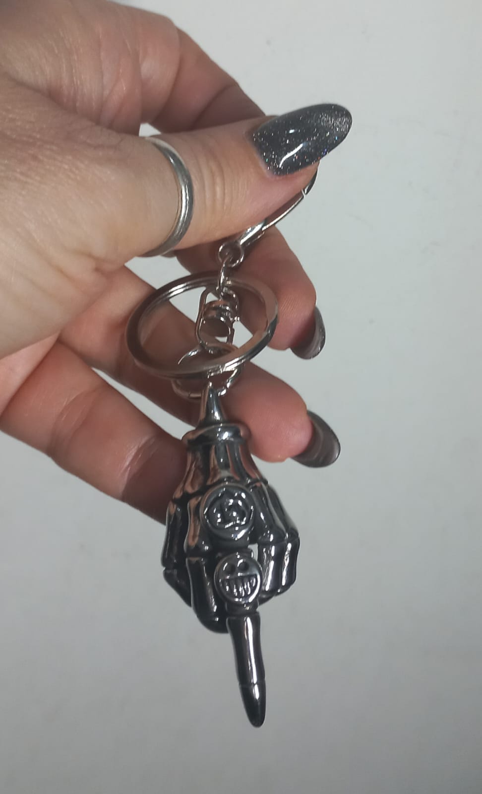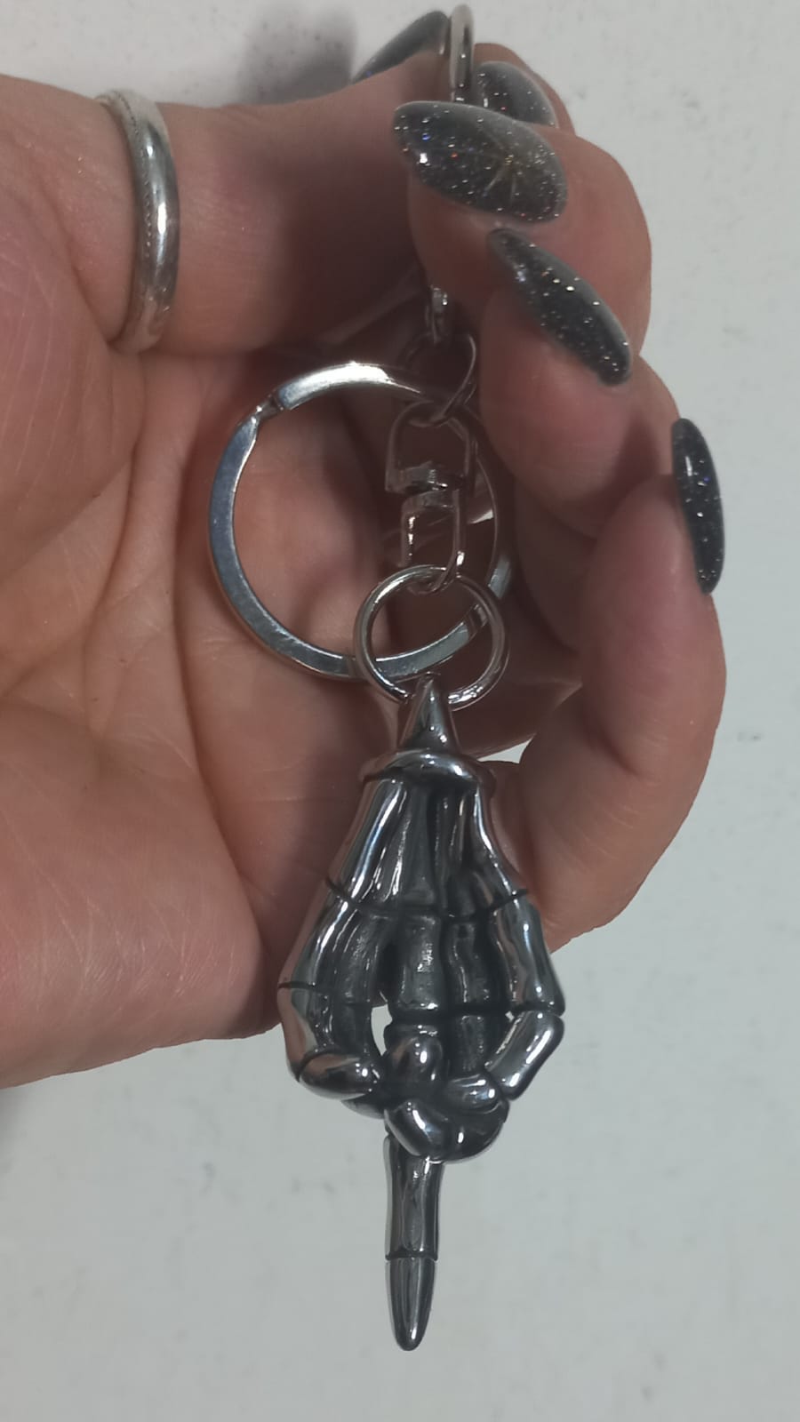 Portachiavi in Acciaio Mano Rock Dito medio
