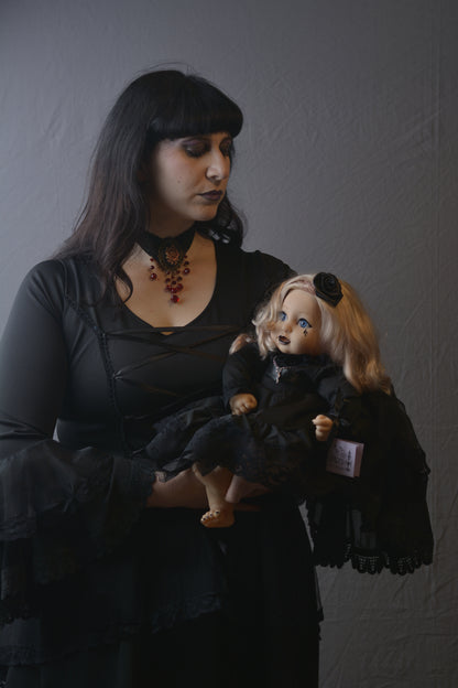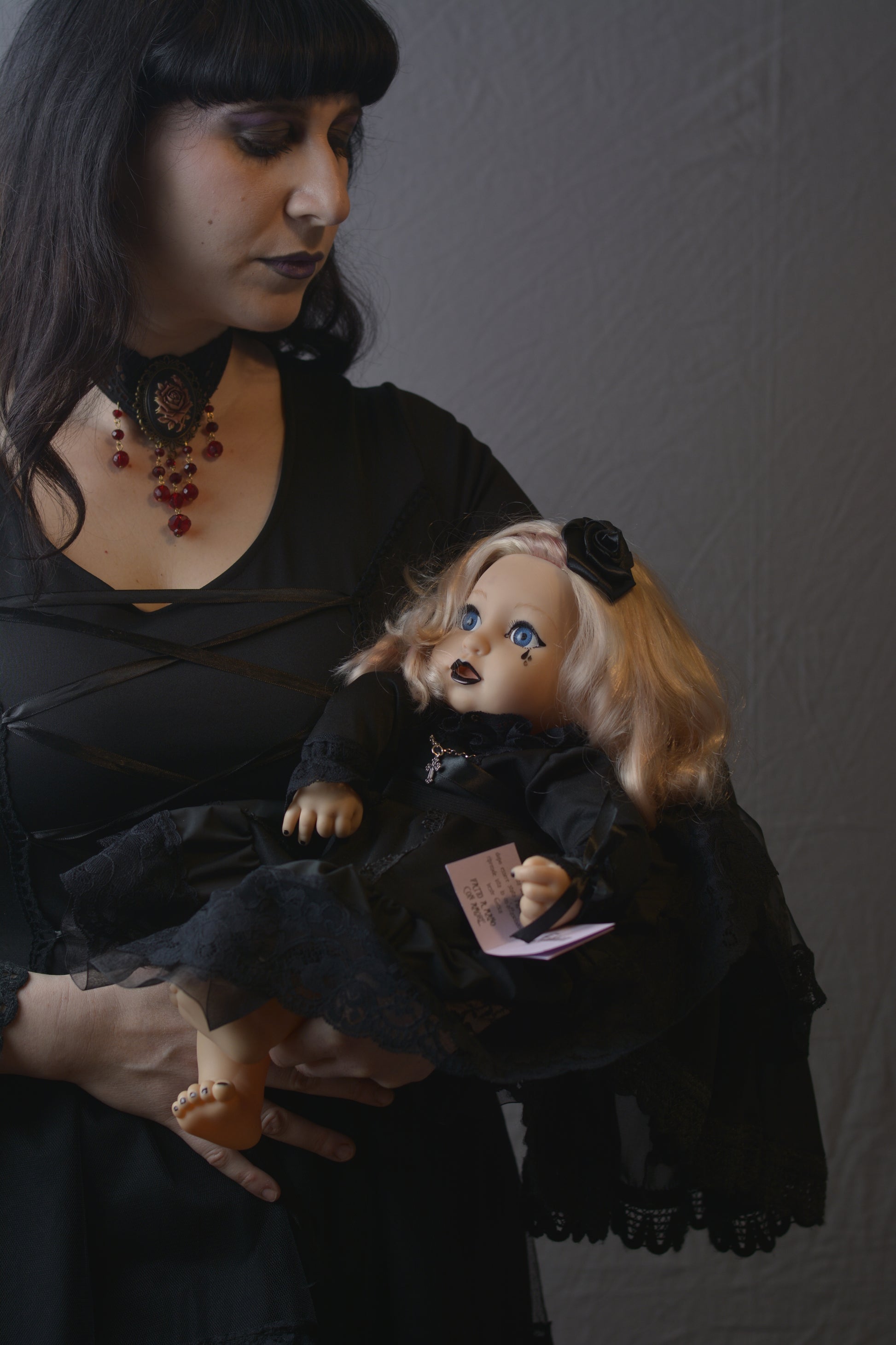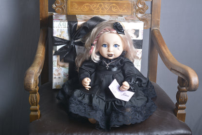 Rebecca è una bambola gotica restaurata che colpisce per il suo stile unico e il suo aspetto curato nei minimi dettagli. L'outfit, il trucco e l'acconciatura sono stati realizzati a mano con passione, conferendo a Rebecca un'aura di mistero e fascino. Il suo sguardo intenso e il suo abbigliamento elaborato la rendono un pezzo distintivo per qualsiasi collezione. Rebecca è la scelta ideale per chi cerca un elemento decorativo che sia al tempo stesso elegante e intrigante.