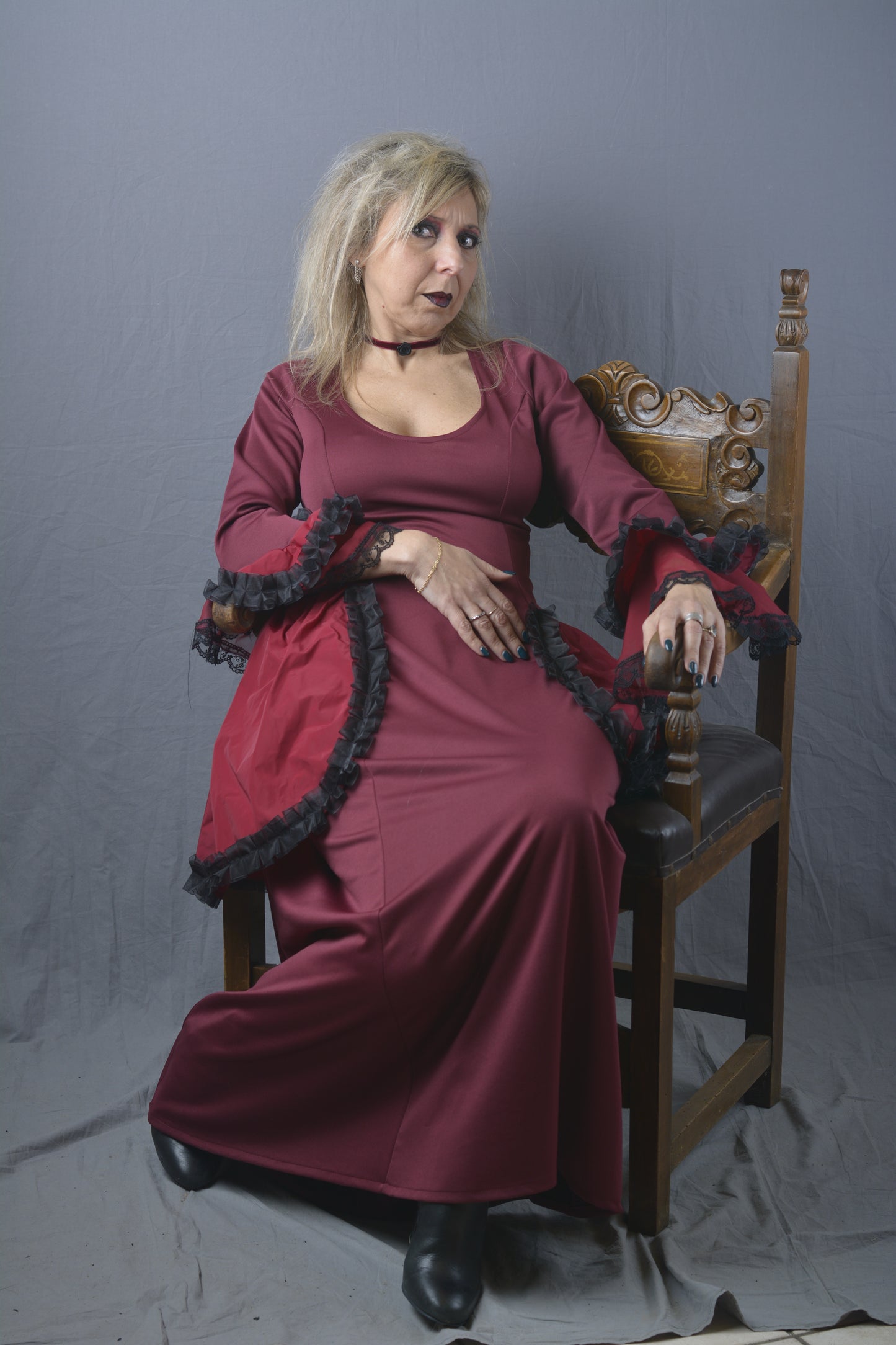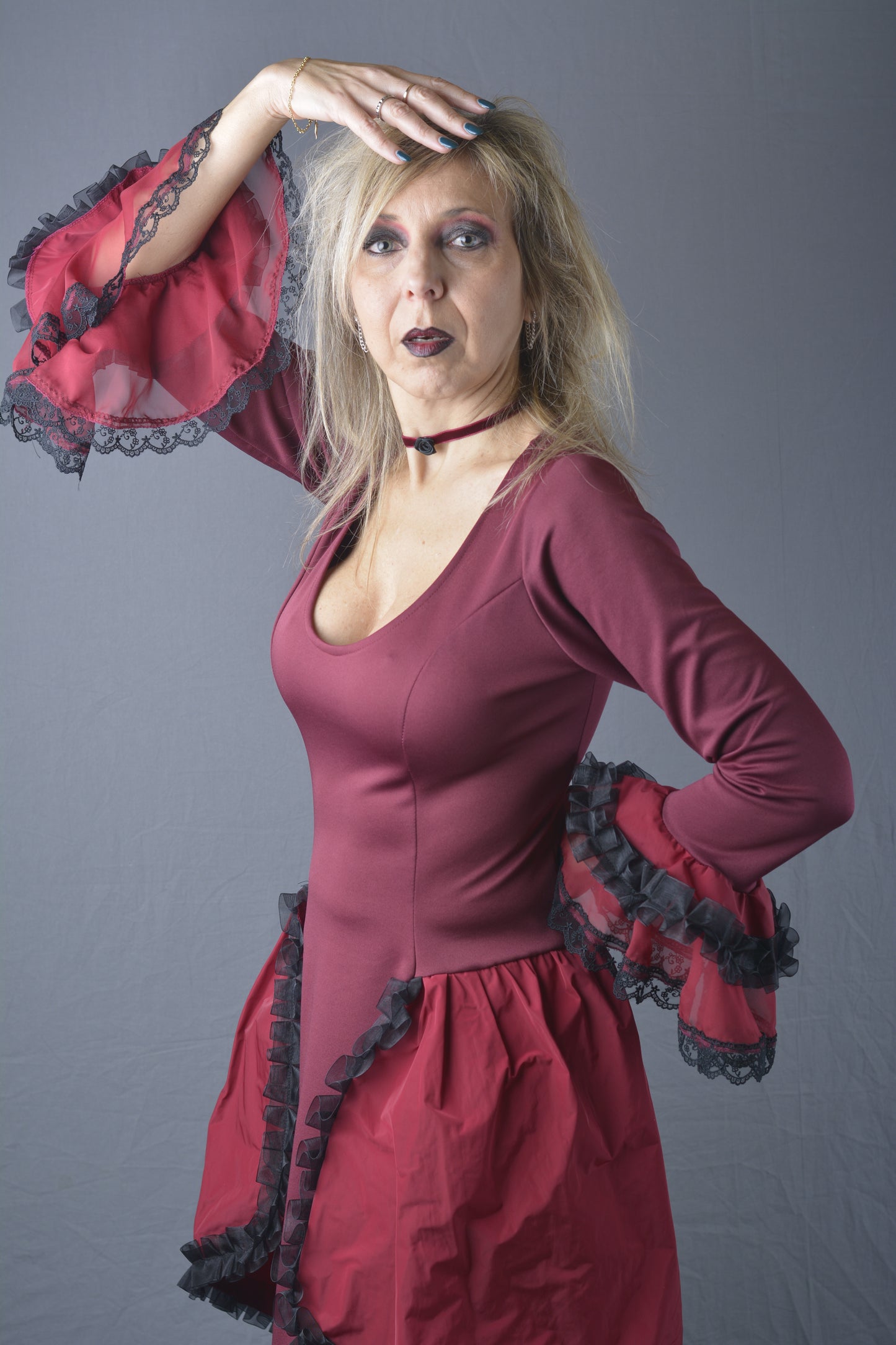 Immergiti in un'eleganza senza tempo con questo abito lungo in tessuto elasticizzato bordeaux. La sopragonna e i volant delle maniche in taffettà bordeaux, rifiniti da rouches in organza nera, aggiungono volume e un tocco di raffinatezza. L'ampio scollo rotondo mette in risalto il décolleté, rendendo questo abito perfetto per ogni occasione speciale. La vestibilità confortevole e il design curato nei minimi dettagli ti faranno sentire sicura e affascinante.