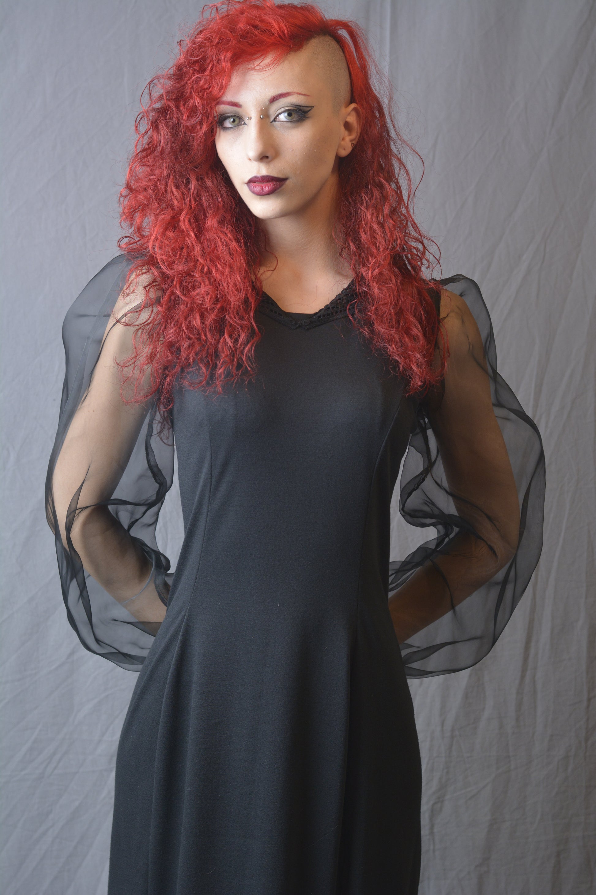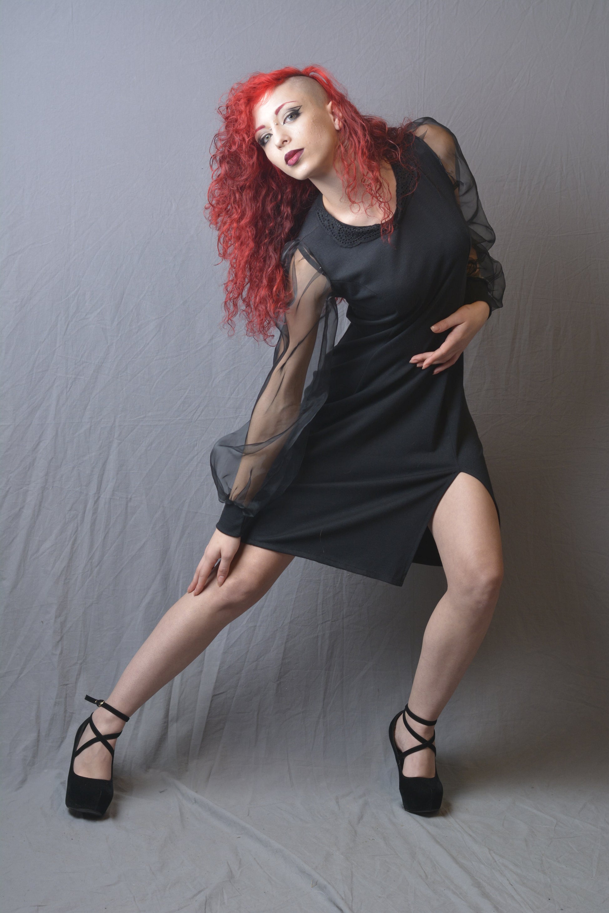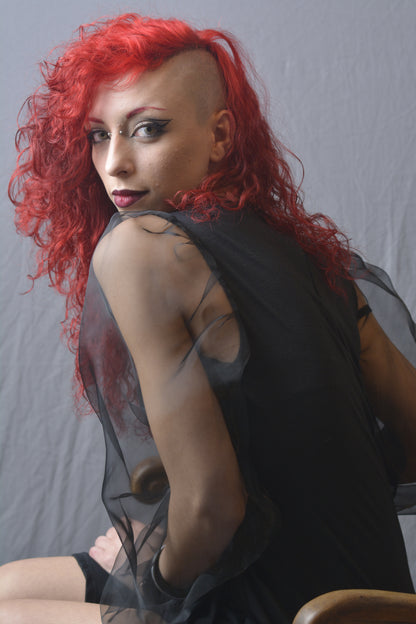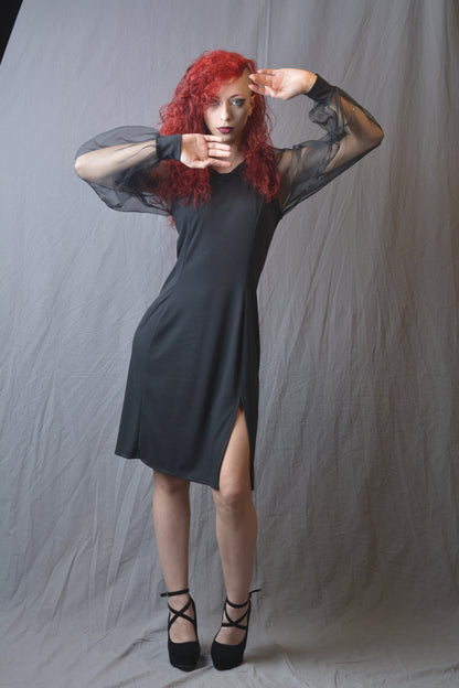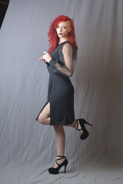 Eleganza e stile si incontrano nel nostro abito corto in cotone elasticizzato nero. Questo raffinato abito presenta maniche in organza trasparente con polsini in cotone elasticizzato per un tocco di originalità. La linea affusolata e lo spacco laterale conferiscono un aspetto sensuale e moderno, perfetto per qualsiasi occasione speciale. Un capo indispensabile per il tuo guardaroba, ideale per chi desidera un look sofisticato e di tendenza.