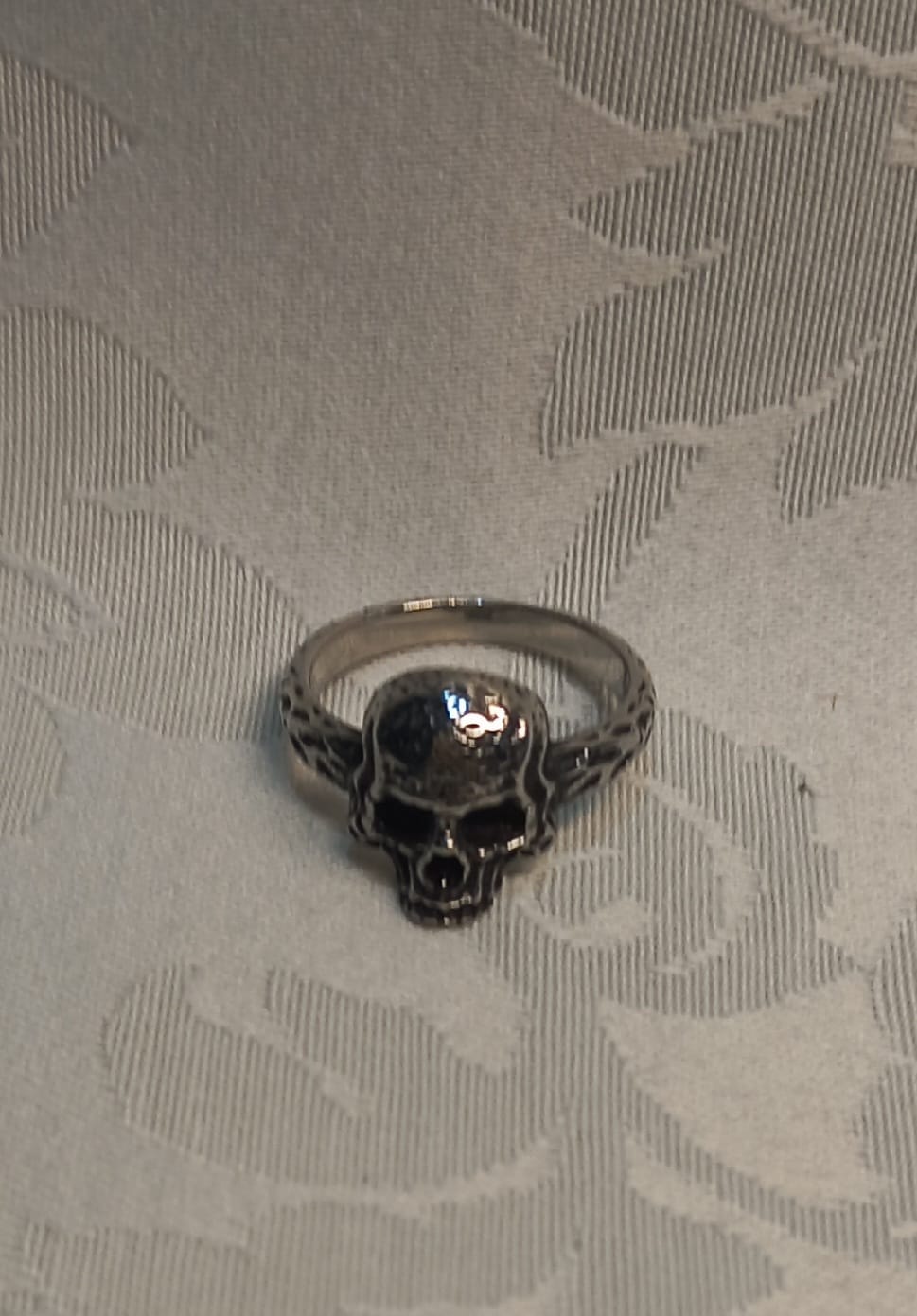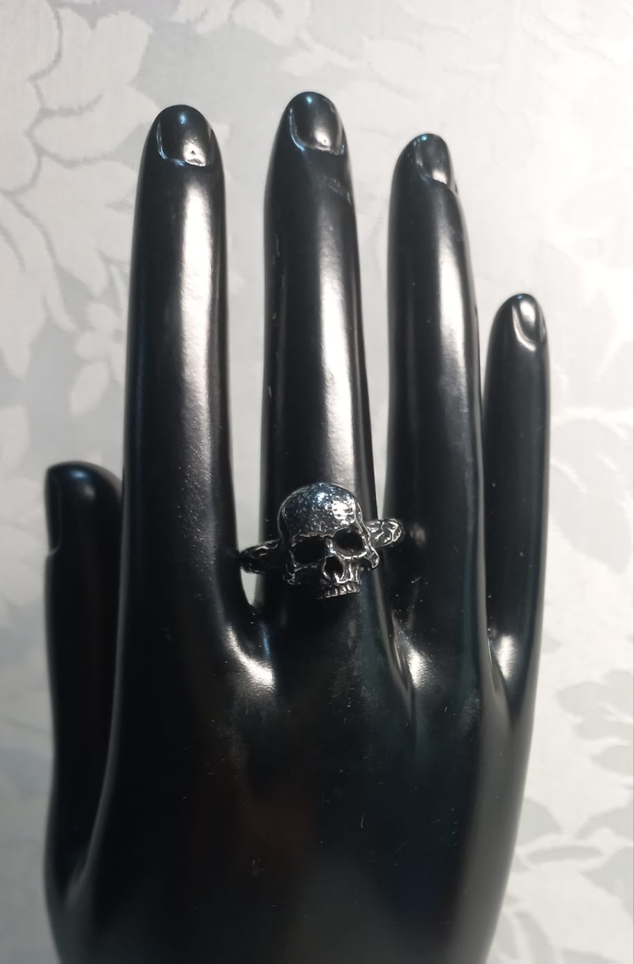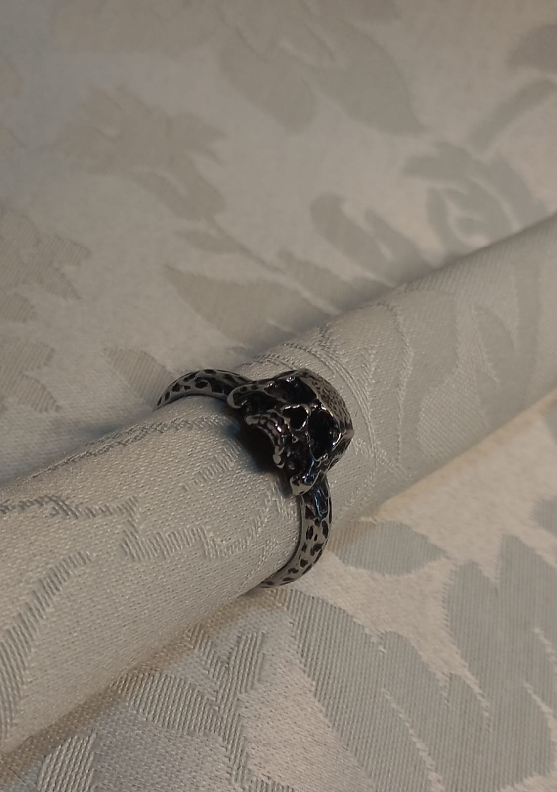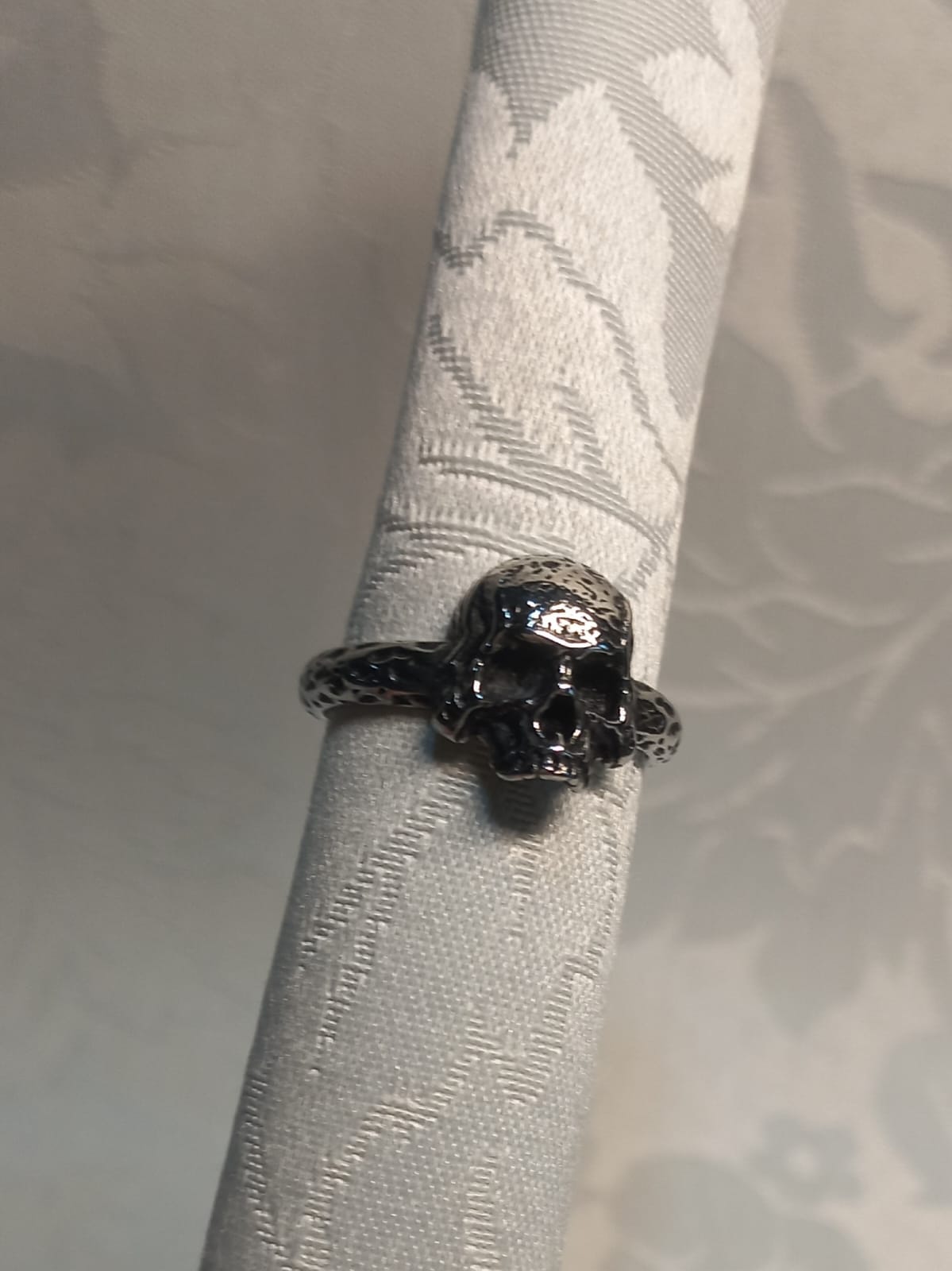 Aggiungi un tocco di audacia e mistero al tuo stile con questa fede in acciaio, caratterizzata da un teschio. La lavorazione dettagliata e la qualità dei materiali rendono questo anello un accessorio distintivo e di carattere. Perfetta per chi desidera esprimere la propria personalità con un gioiello che racconta una storia di forza e intrigo.
