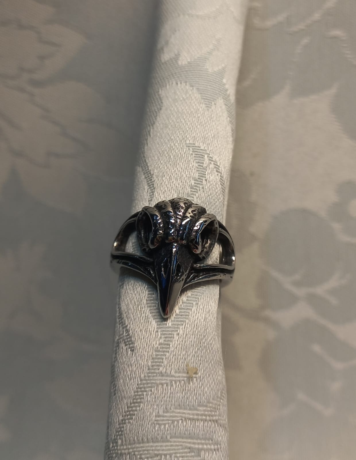 Aggiungi un tocco di audacia e mistero al tuo stile con questo anello in acciaio, caratterizzato da un teschio di rapace. La lavorazione dettagliata e la qualità dei materiali rendono questo anello un accessorio distintivo e di carattere. Perfetto per chi desidera esprimere la propria personalità con un gioiello che racconta una storia di forza e intrigo.