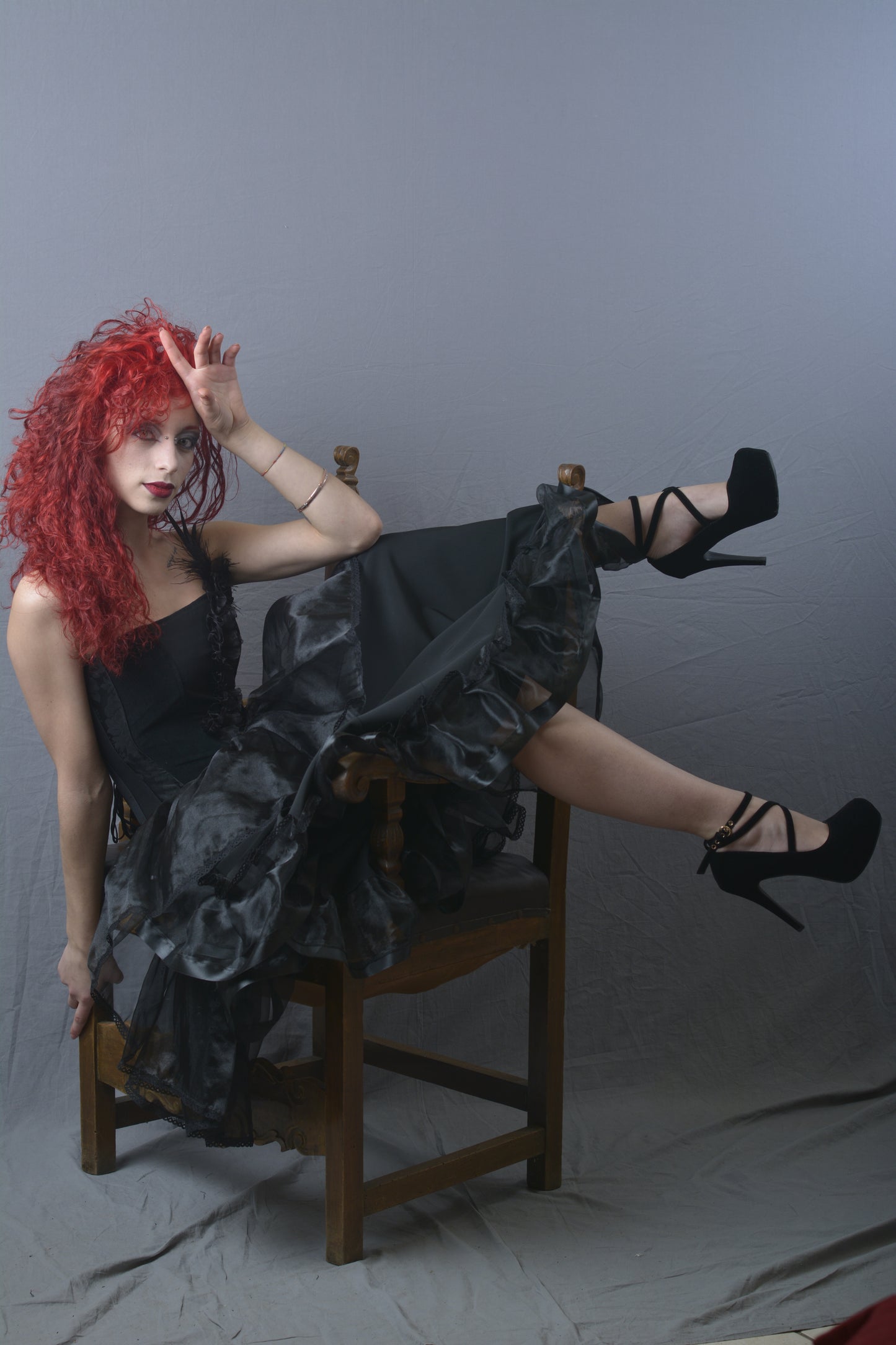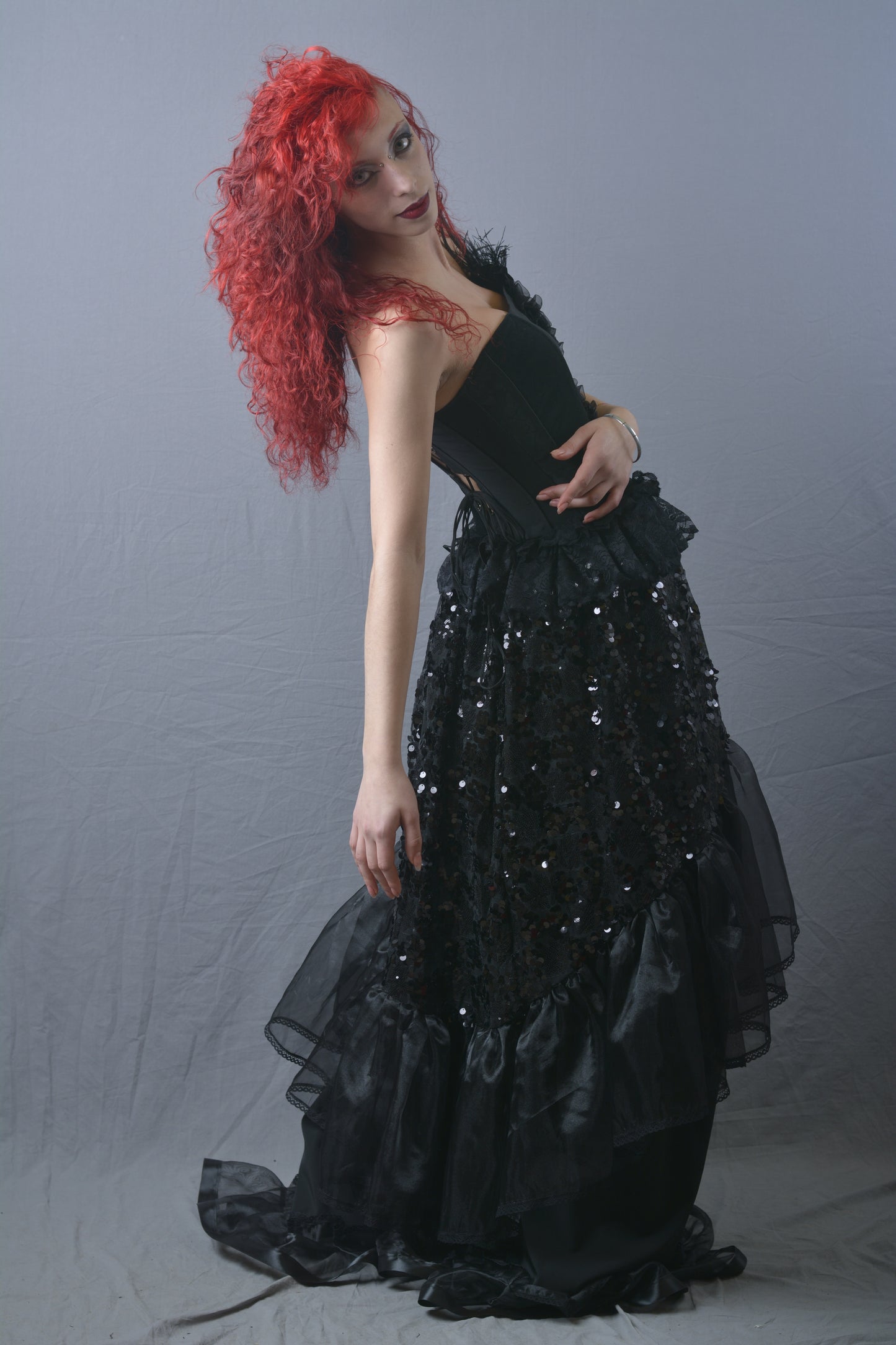 Gonna Lunga con Sopragonna in Paillettes e Balze in Organza