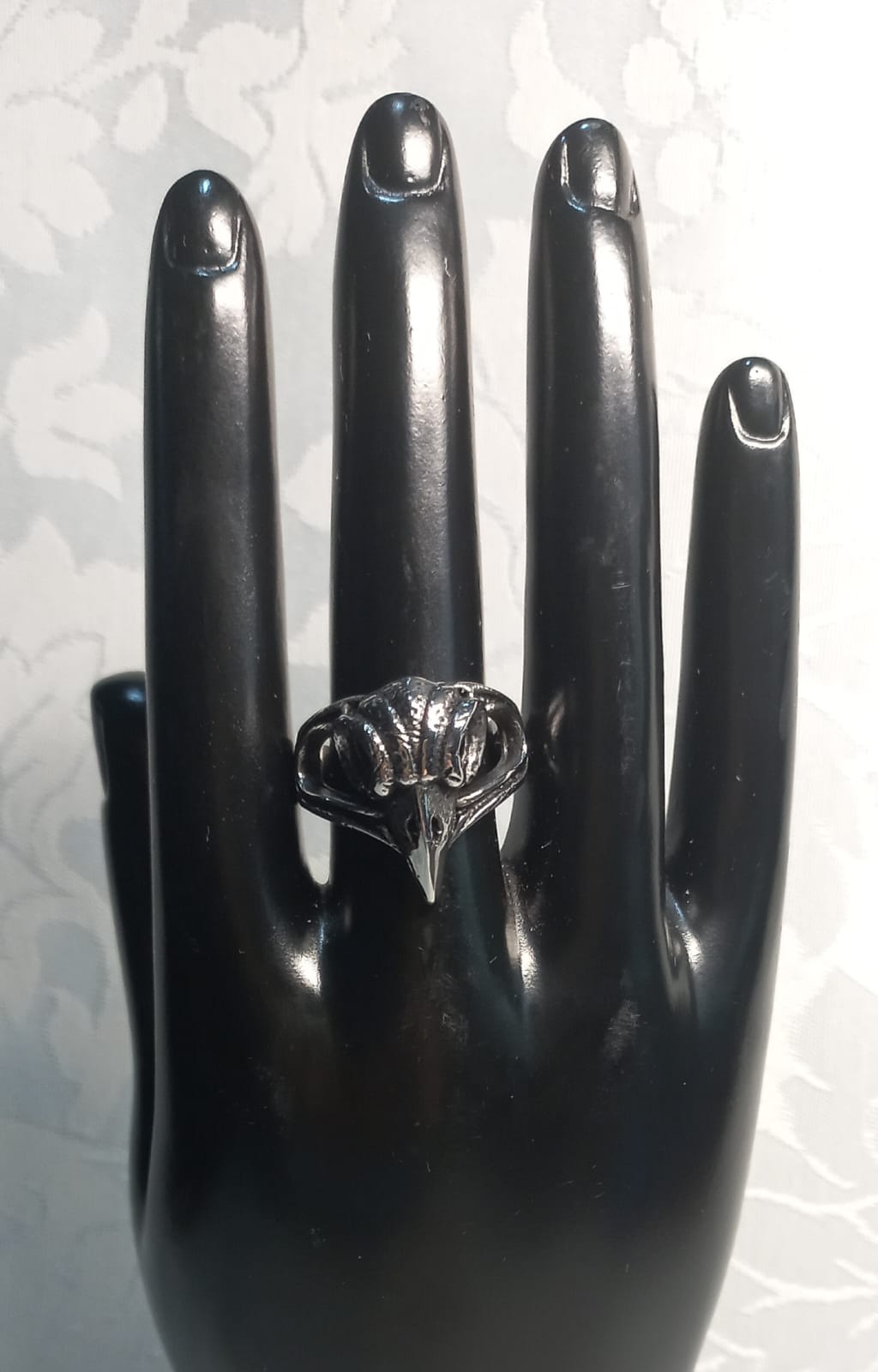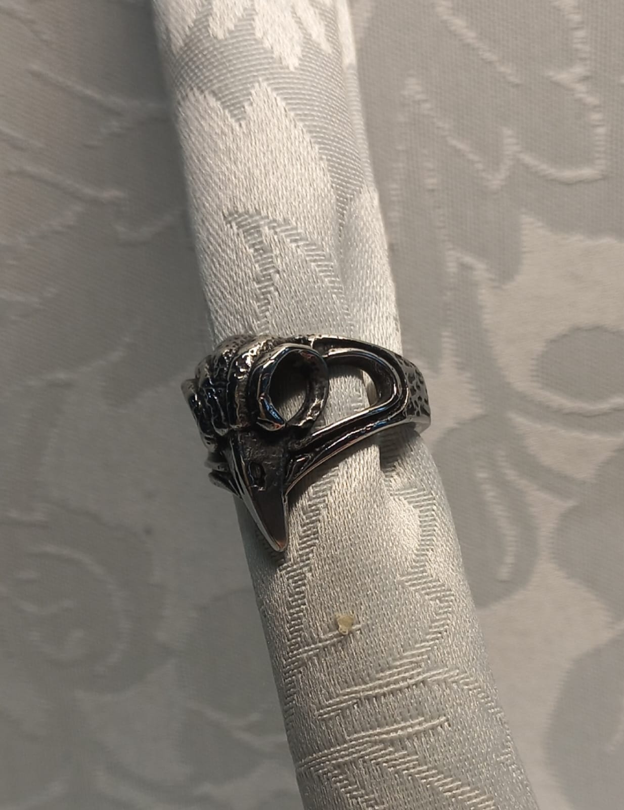Aggiungi un tocco di audacia e mistero al tuo stile con questo anello in acciaio, caratterizzato da un teschio di rapace. La lavorazione dettagliata e la qualità dei materiali rendono questo anello un accessorio distintivo e di carattere. Perfetto per chi desidera esprimere la propria personalità con un gioiello che racconta una storia di forza e intrigo.