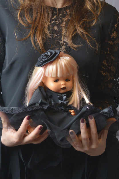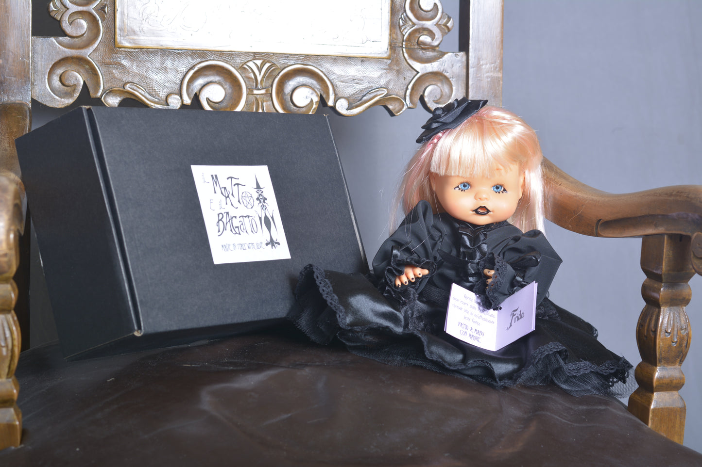 Scopri il fascino misterioso della Resurrected Doll Frida, una bambola gotica meticolosamente restaurata e resa unica grazie a un outfit, un'acconciatura e un trucco interamente realizzati a mano. Ogni dettaglio è stato curato con passione per creare un pezzo unico che racconta una storia di rinascita e bellezza oscura. Questa bambola è perfetta per collezionisti e amanti del genere gotico, aggiungendo un tocco di eleganza e mistero a qualsiasi ambiente.