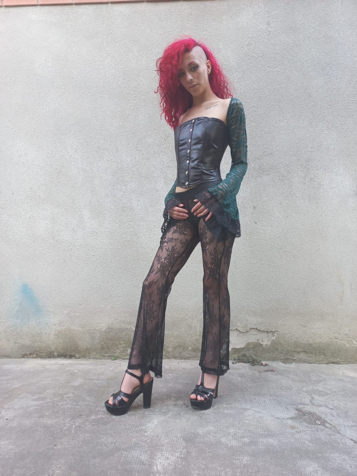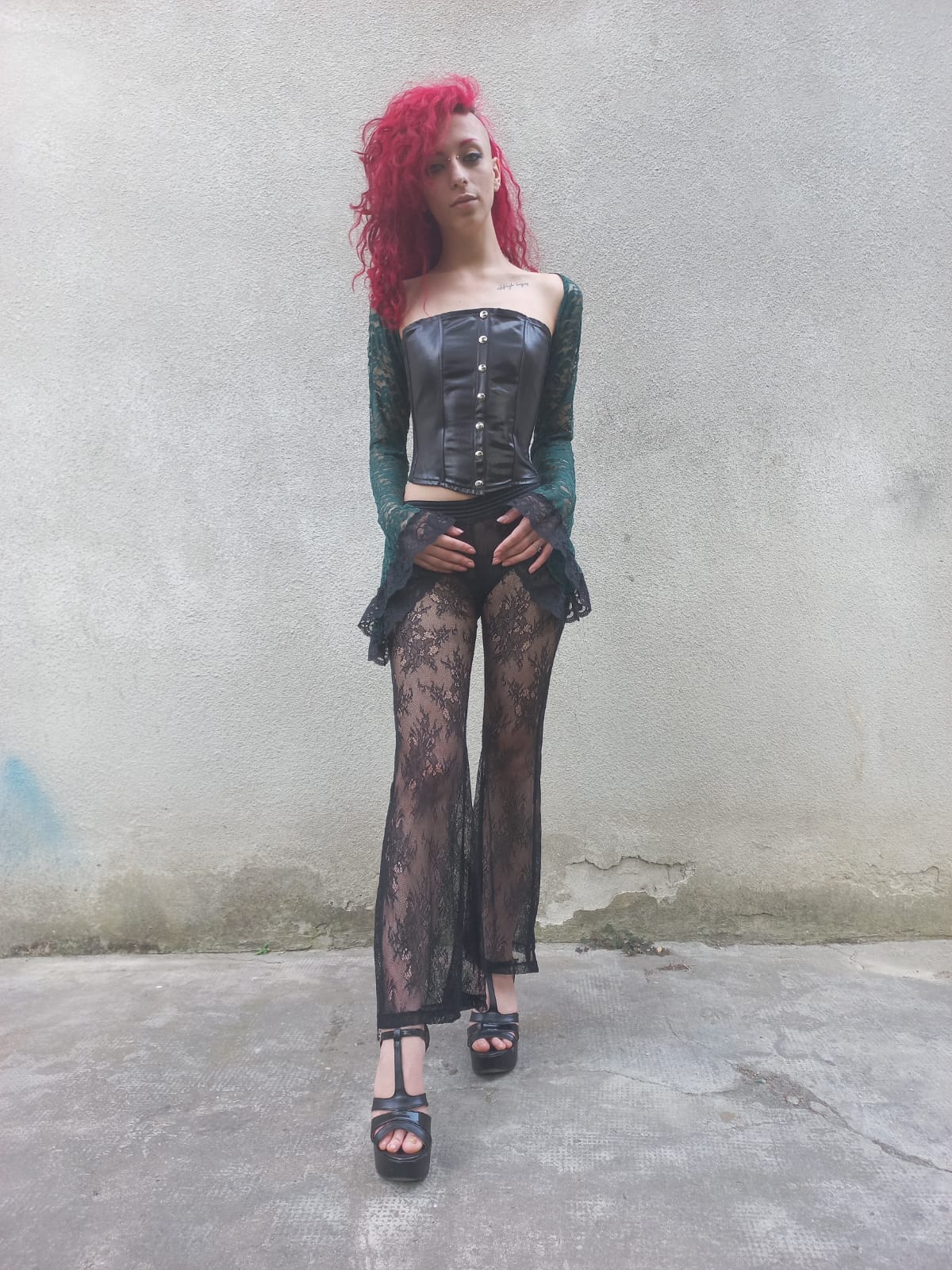 Realizzato interamente a mano in Italia, è un capo che esprime artigianalità e stile alternativo, ideale per completare look da sera, eventi speciali o outfit dal fascino sensuale e ricercato. Un indumento esclusivo che aggiunge un tocco di personalità e seduzione al guardaroba.